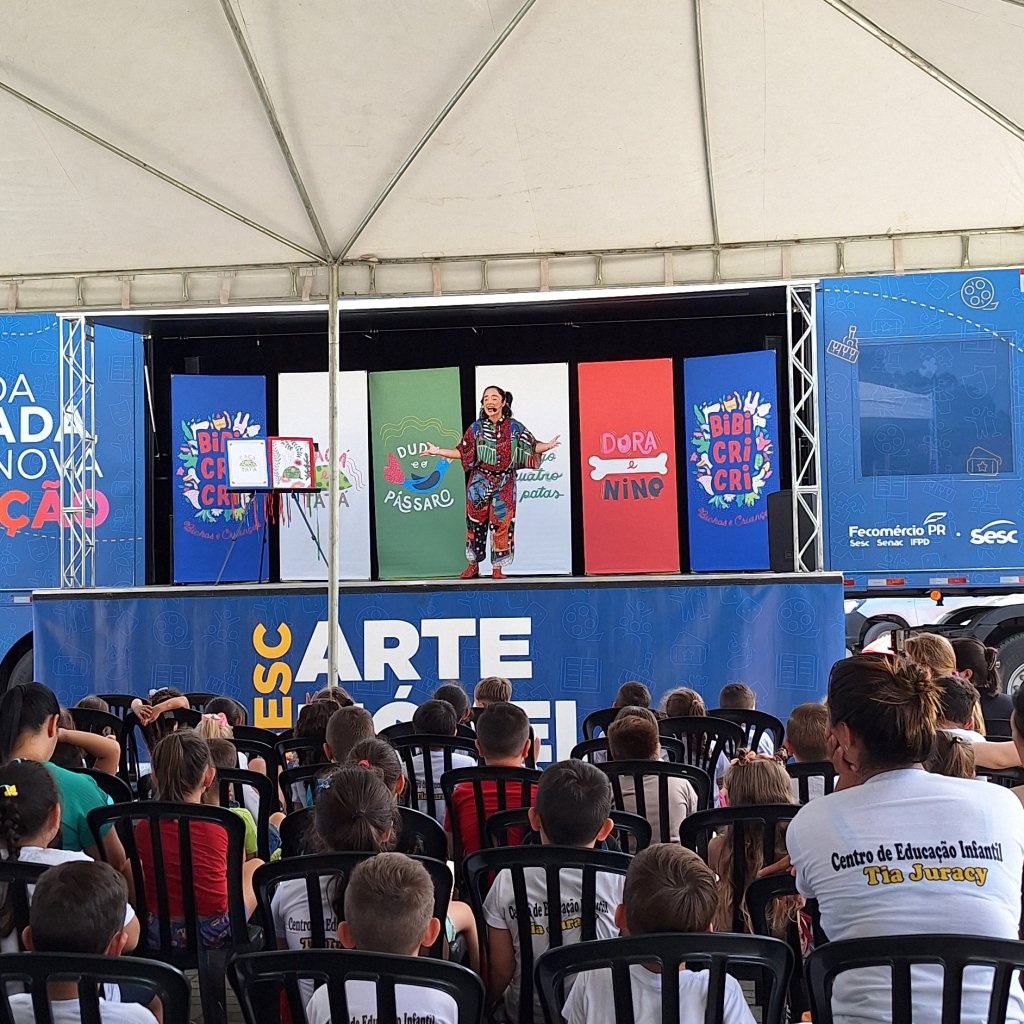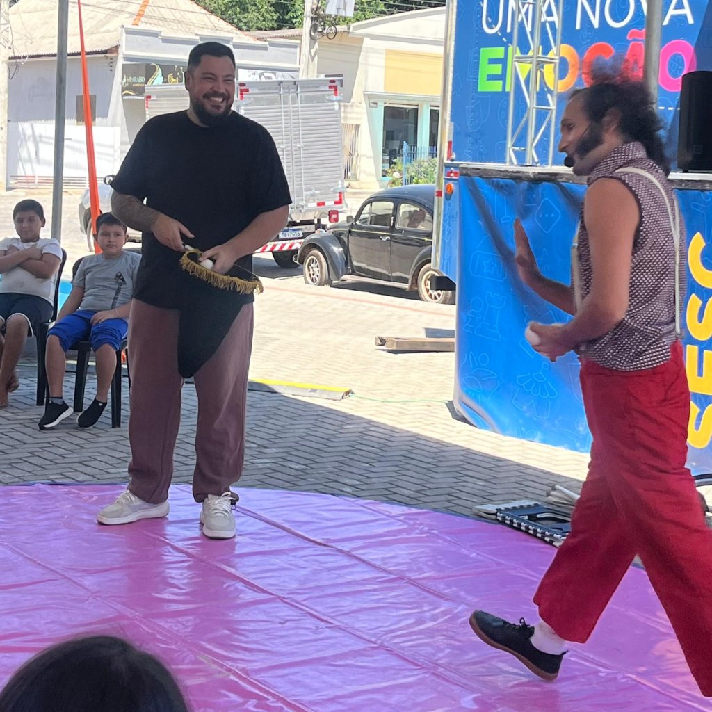 Sesc Arte Móvel encanta público de todas as idades em Cerro Azul com espetáculos circenses e contação de histórias
