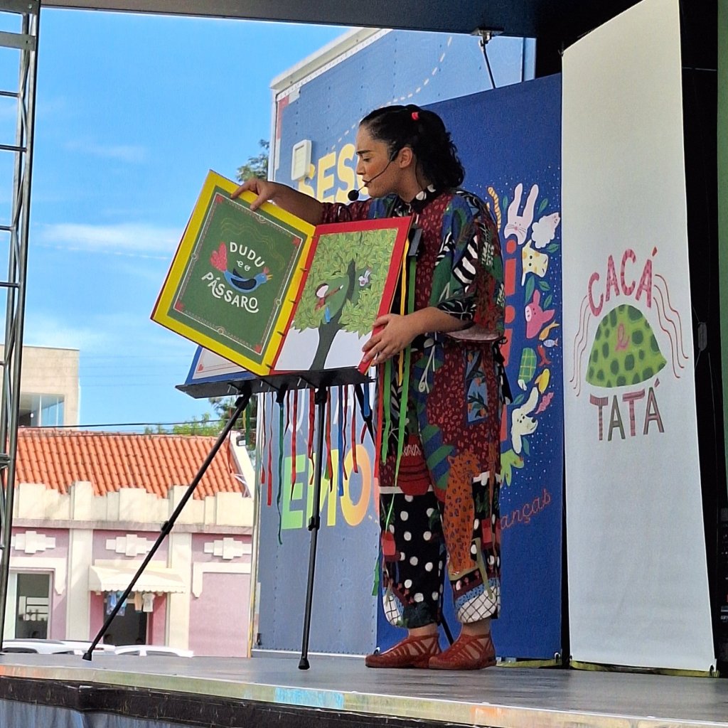 Já no dia 6, foi a vez de Bibi Cricri, da ViraVolta Cultural, encantar os presentes com o espetáculo "Bichos e Crianças", uma divertida sessão de contação de histórias que estimulou a imaginação e a criatividade dos pequenos.
