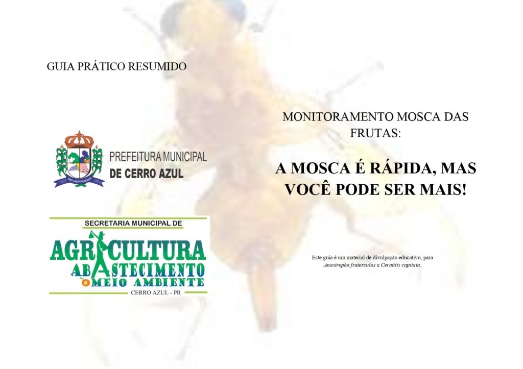 A Secretaria de Agricultura juntamente com SEBRAE e IDR-PR com o apoio dos produtores realizam o monitoramento da incidência da Mosca da Fruta em Cerro Azul para proteção da safra da Ponkan, e alertam para o aumento de ocorrência da praga em diversas regiões do município.