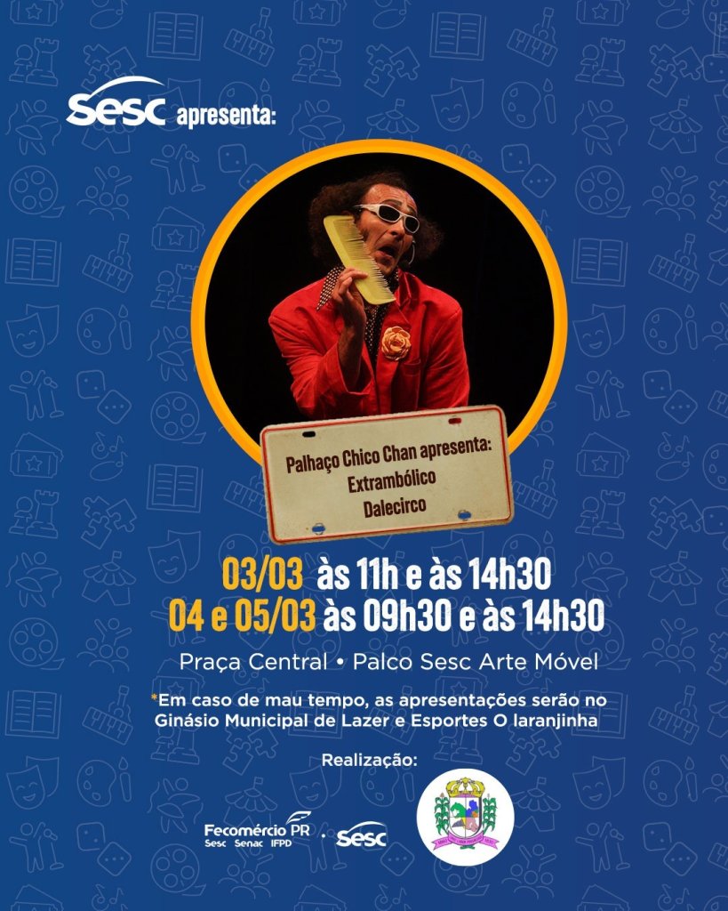 A abertura da programação fica por conta do aclamado palhaço Chico Chan, que apresenta o espetáculo "Extrambólico Dalecirco". Com uma mistura de humor, criatividade e interação com o público, a apresentação promete arrancar gargalhadas de crianças e adultos.